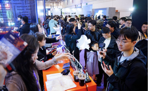 在“大力士挑战”区,观众亲手拉伸圣佳科尔贝车衣膜样品,亲身感受超强韧性。成功拉断者赢取单车科尔贝车衣或不同金额的隔热膜与元车衣抵扣券,挑战失败的观众反而对产品产生浓厚兴趣,现场咨询络绎不绝。一旁的“一分钟隔热体验”同样火爆:红外线测试灯下,贴有圣佳膜的玻璃侧温度明显更低,围观者纷纷掏出手机记录:“这隔热效果,肉眼可见的牛!”